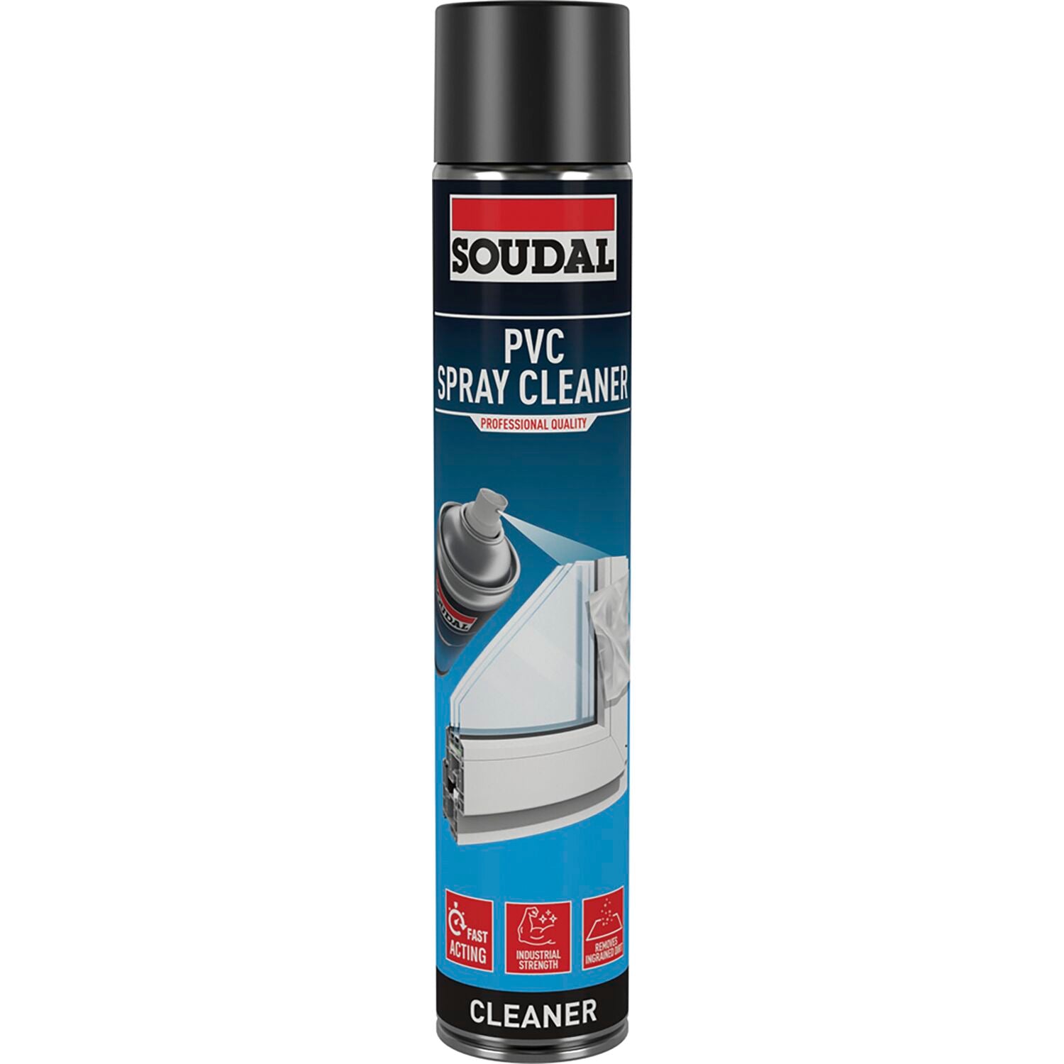 Hochwirksamer, schnell wirkender und trocknender Sprühreiniger, der tiefsitzenden Schmutz und Flecken auf PVC-Rahmen und anderen Kunststoffen entfernt.